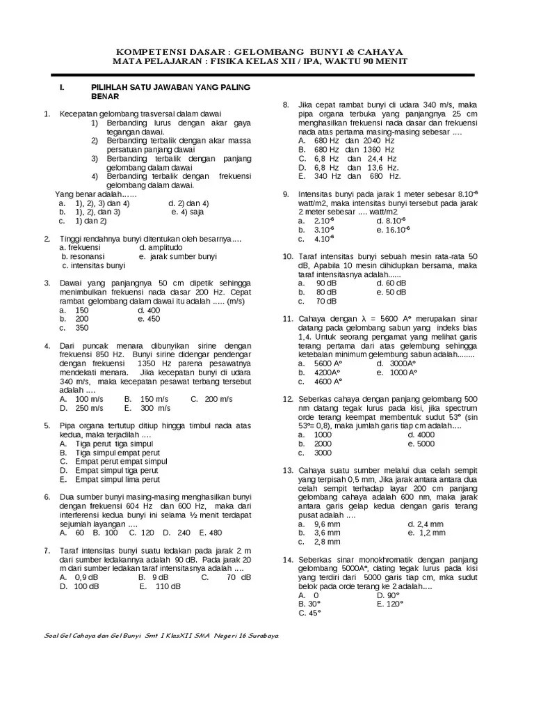 fisika kelas 11 gelombang mekanik 1 soal fisika kelas 11. Suatu gelombang bunyi memiliki ciri khas.